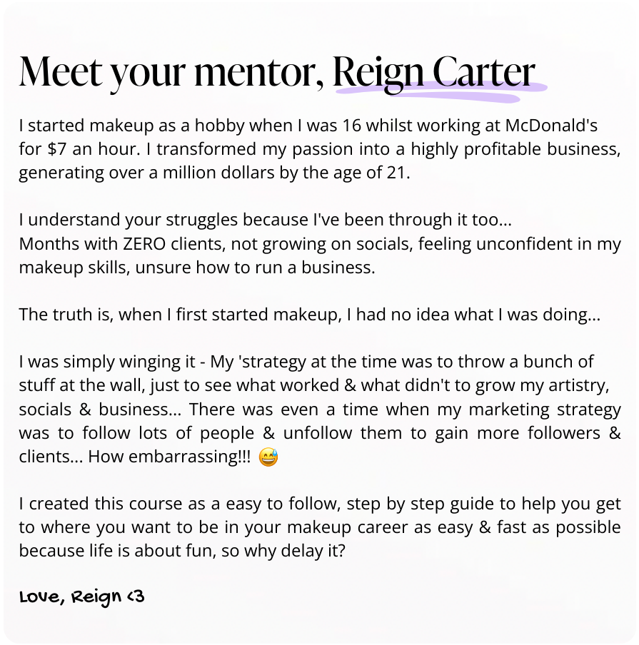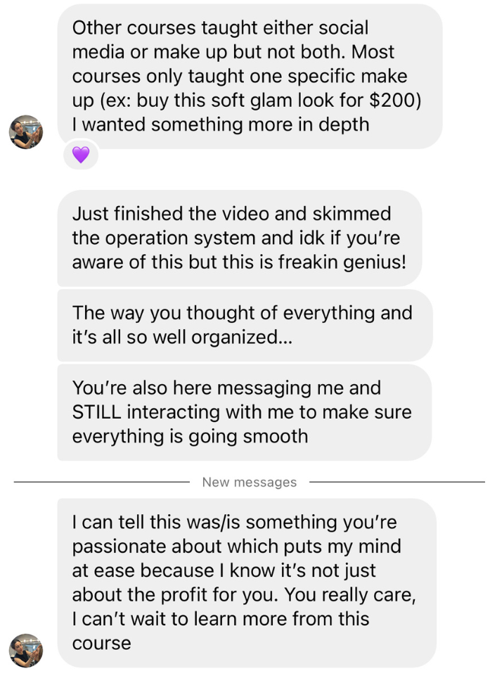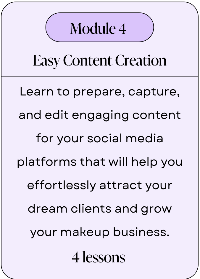 ✦ Over 50+ self-paced business, marketing & makeup easy-to-follow lessons.